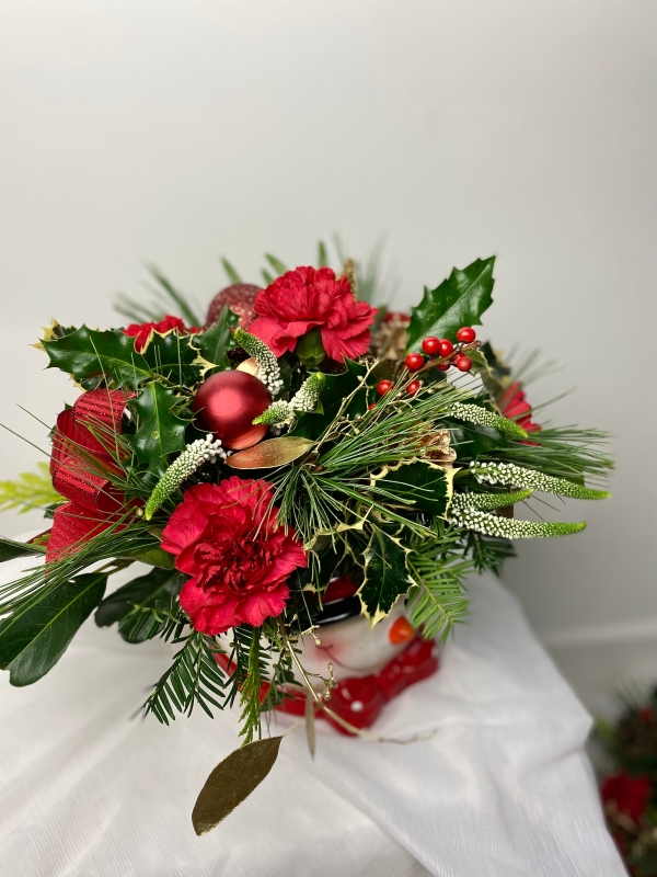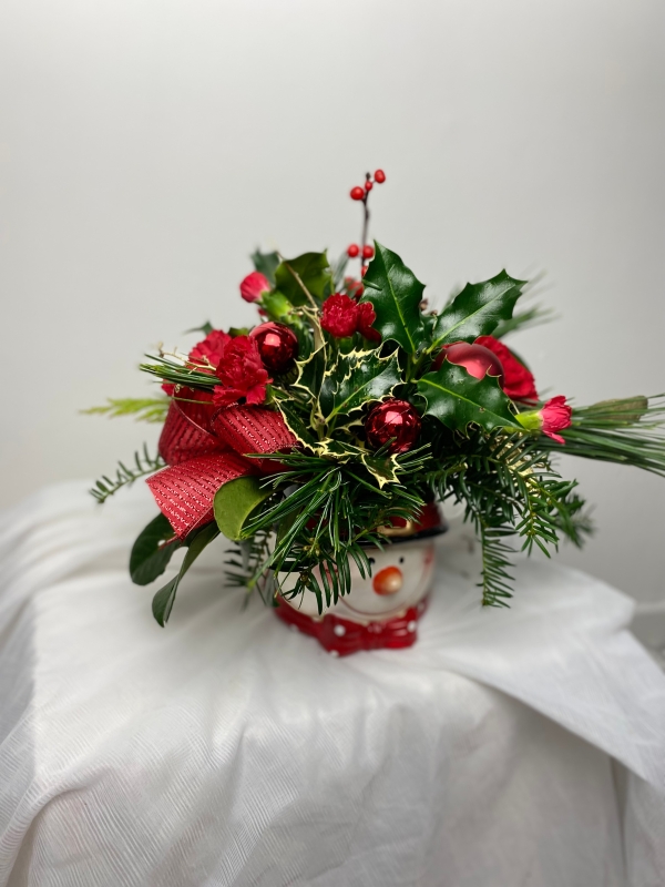 Frosty the snowman is a seasonal all round arrangement with festive foliages