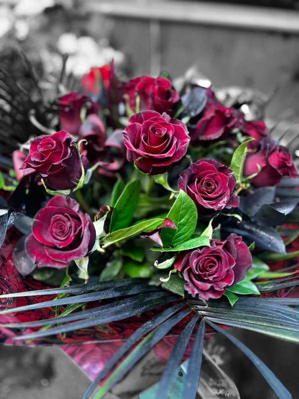 A luxurious bouquet of deep red roses crafted to symbolise passion,longing and desire.